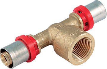 Трехсторонний пресс-фитинг (тройник) для подсоединения к металлопластиковым трубам (металлополимерные трубы) или трубам из сшитого полиэтилена компонента системы с резьбовым подключением. Резьба фитинга – внутренняя трубная.