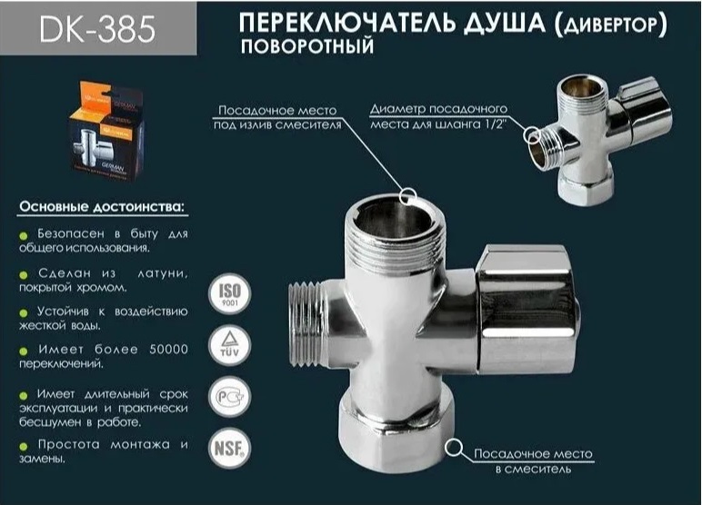 Дивертор к шаровому смесителю DK-385B (в коробке)