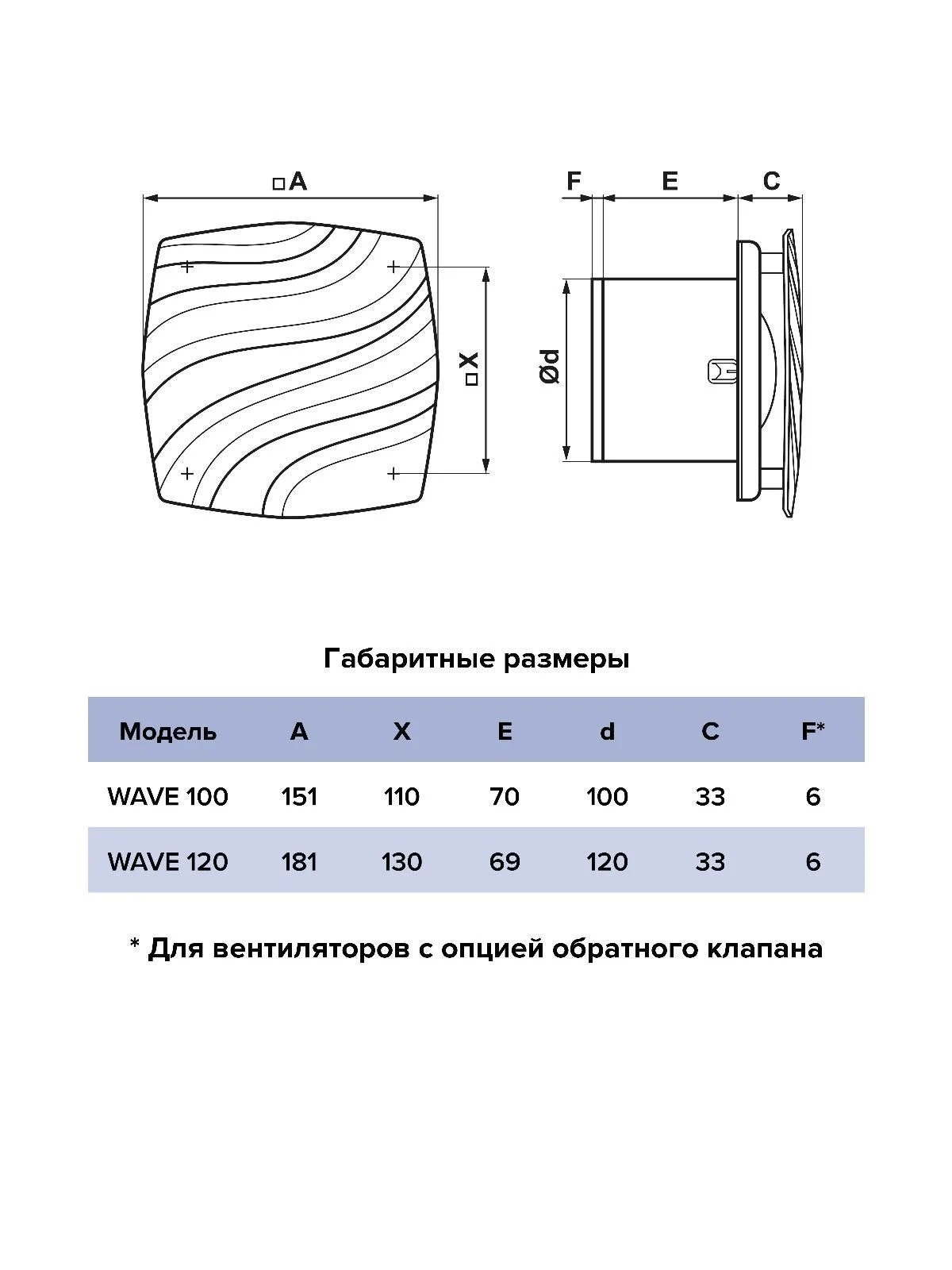 Бытовые вентиляторы WAVE применяется для постоянной и периодической вентиляции санузлов, ванных комнат, кухонь и других помещений для удаления влаги и поддержания оптимального микроклимата. Вентиляторы WAVE оснащены монтажными лапками для простого и надежного крепления; легкосъемной закрытой лицевой панелью и бесшумным обратным клапаном, который предотвращает обратный поток воздуха и проникновение неприятного запаха из шахты. Корпус и крыльчатка выполнены из высококачественного и прочного ABS-пластика, который надежно прослужит весь срок использования. Уровень защиты вентилятора – IP24.